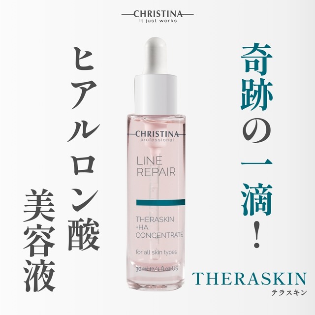 クリスティーナ正規取扱サロン「Art I.B Kobe」が取り扱う、 THERASKINです。 効果 肌の水分レベル維持のために開発された美容液 テラスキンは新世代の水分美容液であり、肌を活性化させ、しなやかさ、輝き、若さを回復させます。それは肌へ水のような質感を与え、肌になじみよく、急速に吸収され、水分量のバランスを保ち、老化を抑制します。 クリスティーナ40年の歴史の中で常にベストセラー クリスティーナ誕生以来から現在に至るまでベストセラーであり、最高の結果を得るために革新的な科学と強力な成分でリニューアルされました。水分が豊富にある若い肌のような外見を保つ効果が持続します。 継続的な深い浸透を実現。抗糖化の予防 毎日の糖化による疲労の徴候を減少させ、長期的にその蓄積を大きく減少させます。 シルクツリーやミモザの樹皮の希少なエキスは、糖化の老化作用を阻止し、肌を滑らかにリフレッシュさせてくれます。 使用方法 2プッシュ or 2スポイト分の量を顔全体・首元に塗布し、やさしく馴染ませます。 肌状態に合わせて、適量を重ねてご使用ください。 配合成分 水、PG、メチルグルセス-20、PEG-20、フェノキシエタノール、PEG-12ジメチコン、ポリソルベート20、ヒドロキシエチルセルロース、ヘキシレングリコール、カプリリルグリコール、エトキシジグリコール、ヒアルロン酸Na、グルコース、クロルフェネシン、EDTA-2Na、フルクトース、BG、プロパンジオール、ネムノキ樹皮エキス、グリセリン、酢酸Na、乳酸、カミツレ花、1,2-ヘキサンジオール、赤227、イソプロパノール、セルロース、オランダセンニチ花エキス、カラメル、安息香酸Na、スクロース、尿素、デキストリン、ソルビン酸K、アラニン、アスパラギン酸、ビサボロール、ニコチン酸ヘキシル、グルタミン酸、エブリコエキス、PEG-40水添ヒマシ油