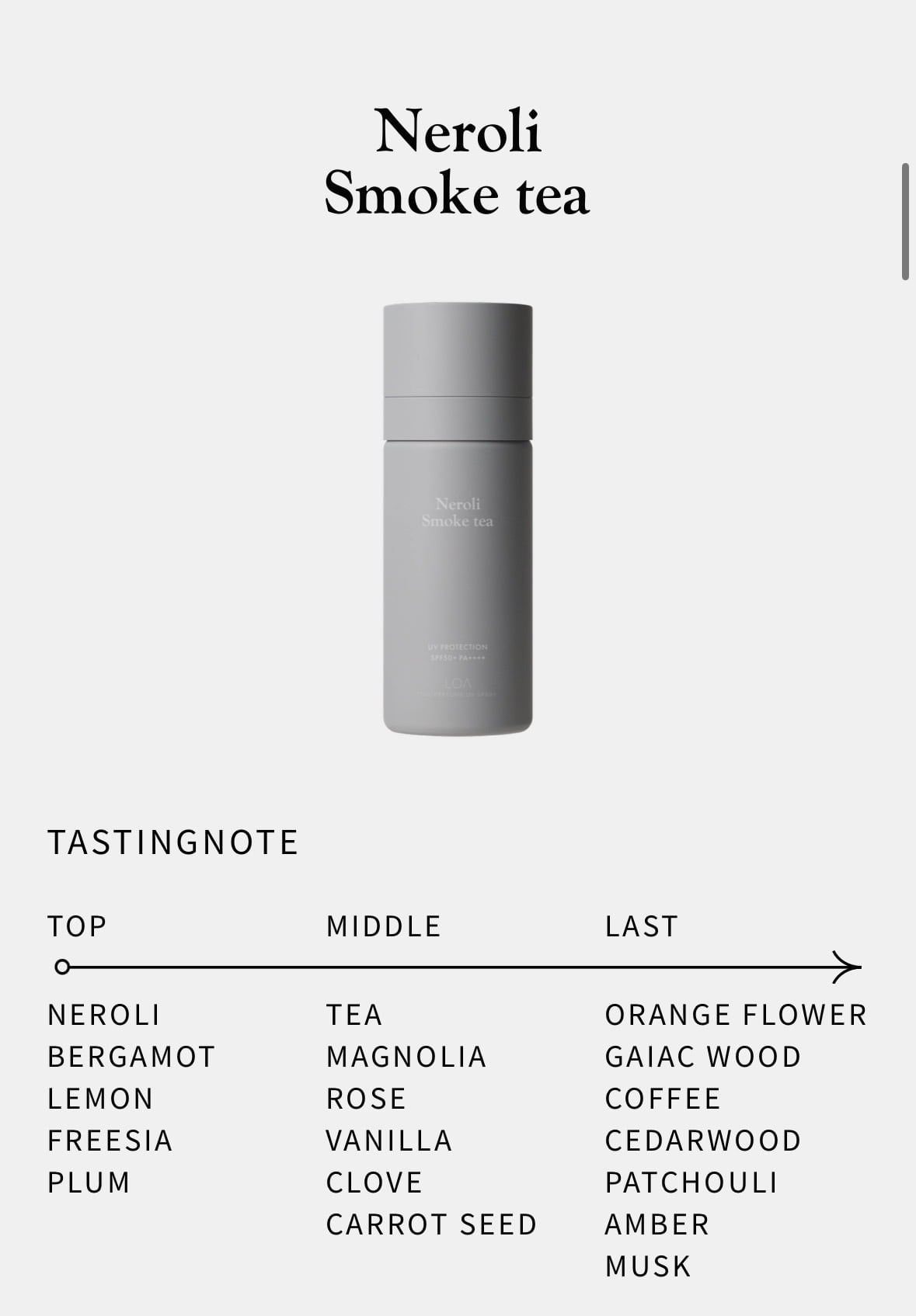 【LOA THE PERFUME UV SPRAY/ロア ザ パフューム UV スプレー】ネロリスモークティー